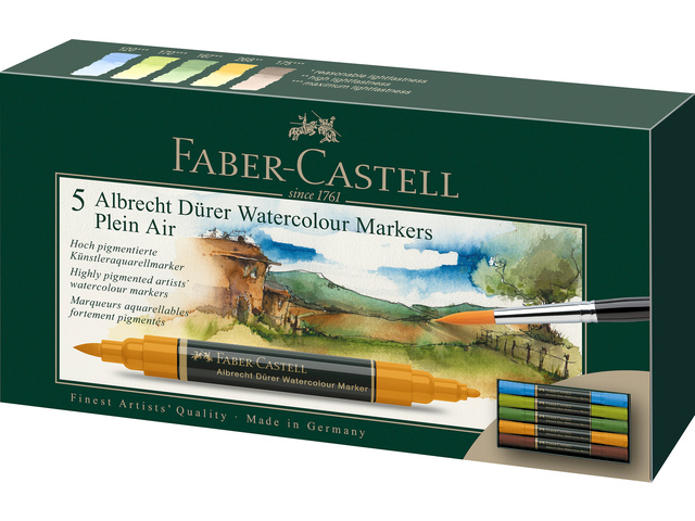 Faber-Castell Albrecht Dürer aquarelmarkers op waterbasis zijn de moderne definitie van aquarelleren, een hoge kwaliteit tekeninstrument dat zowel spontaan schetsen als aquarelleren ondersteunt. De inkt op waterbasis is altijd klaar voor gebruik en is uitstekend bruikbaar in combinatie met water.